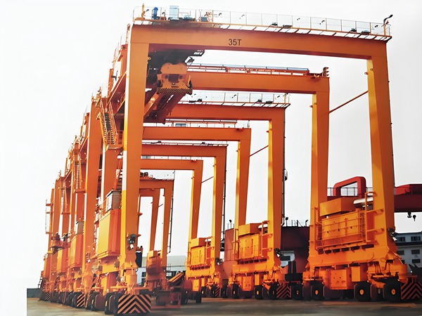 轨道式龙门吊(RMG):沿固定轨道运行,跨度大、定位精度高(误差≤±2cm),适合吞吐量大的自动化码头