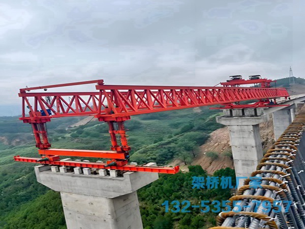 操作流程:完成当前孔梁体架设后,收起前支腿,利用中支腿和后支腿的液压系统,将主梁整体向前 “迈步”;部分轻型机型可采用悬臂过孔,即前支腿先行锚固在前方桥墩,主梁以悬臂状态前移,到位后锁定中支腿。