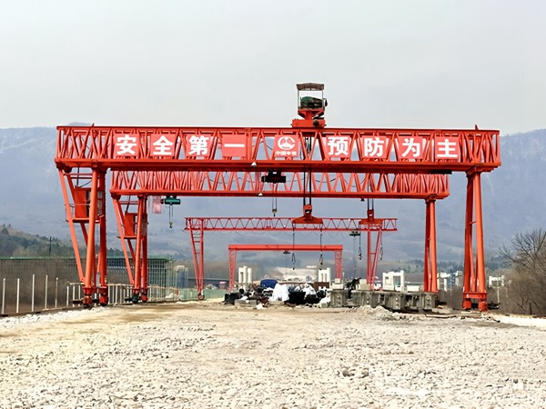 预制梁场:搬运预制 T 梁、箱梁,配合提梁机完成梁体转运、存梁区堆放,通常选择 50-150 吨轮轨式龙门吊,跨度 20-30m;
