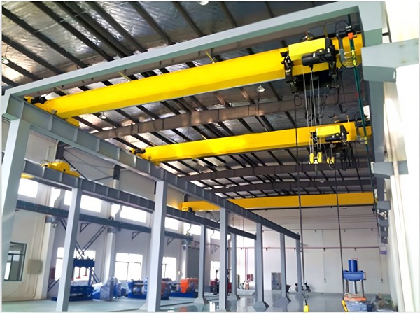 桥式欧式起重机:适用于室内厂房,依靠厂房牛腿或钢结构轨道运行,不占用地面空间,是最常用的类型,分为单梁桥式和双梁桥式。单梁桥式适用于起重量≤10 吨、跨度≤22.5 米的工况;双梁桥式适用于起重量>10 吨、跨度>22.5 米或需要加装副钩、电磁吸盘等辅具的工况。